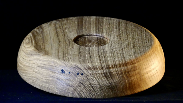 Plateau tourné en chêne massif teinté par ébonisation