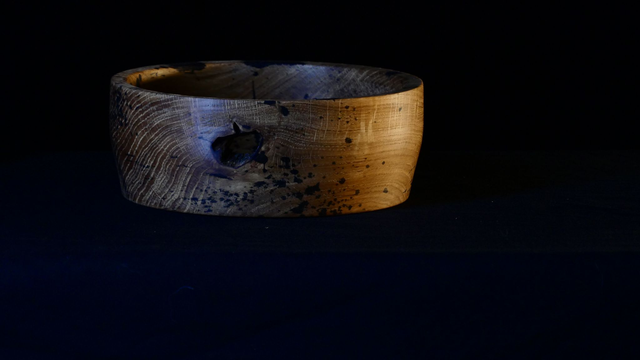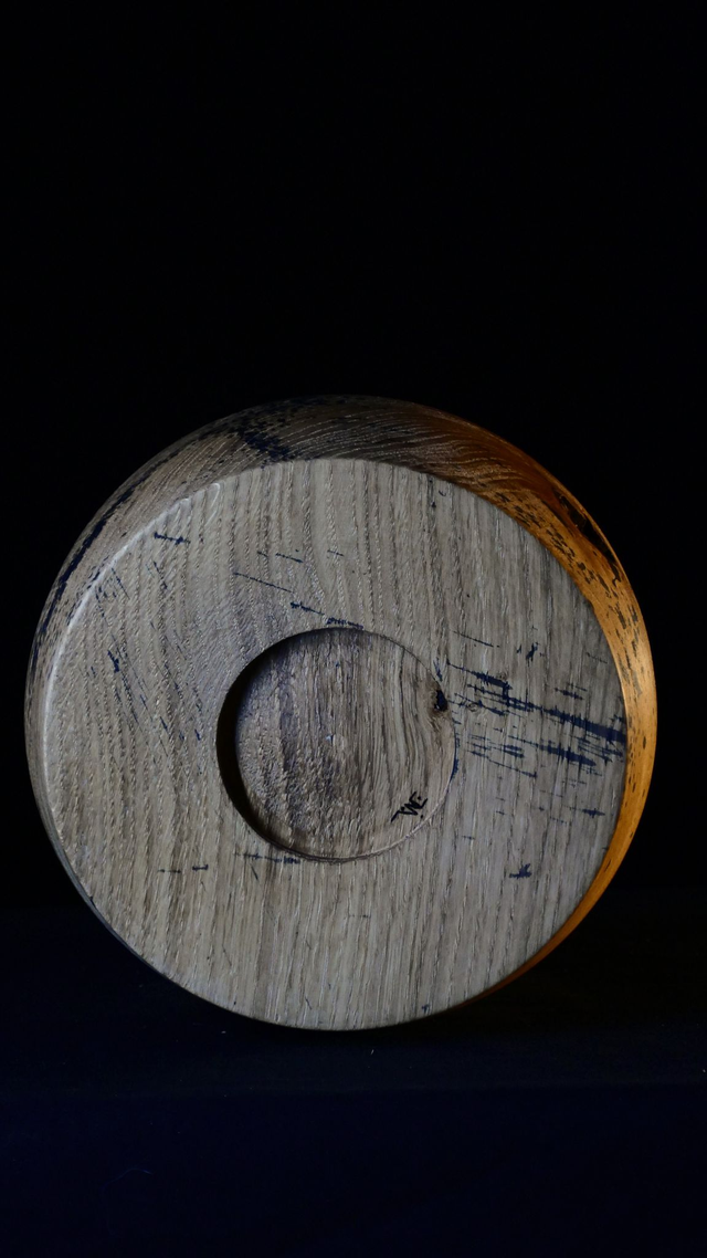 Creux du jour tourné en chêne massif teinté par ébonisation.