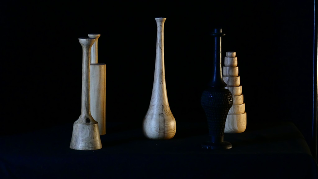 Soliflore pour fleur séchée tourné en chêne massif teinté par ébonisation